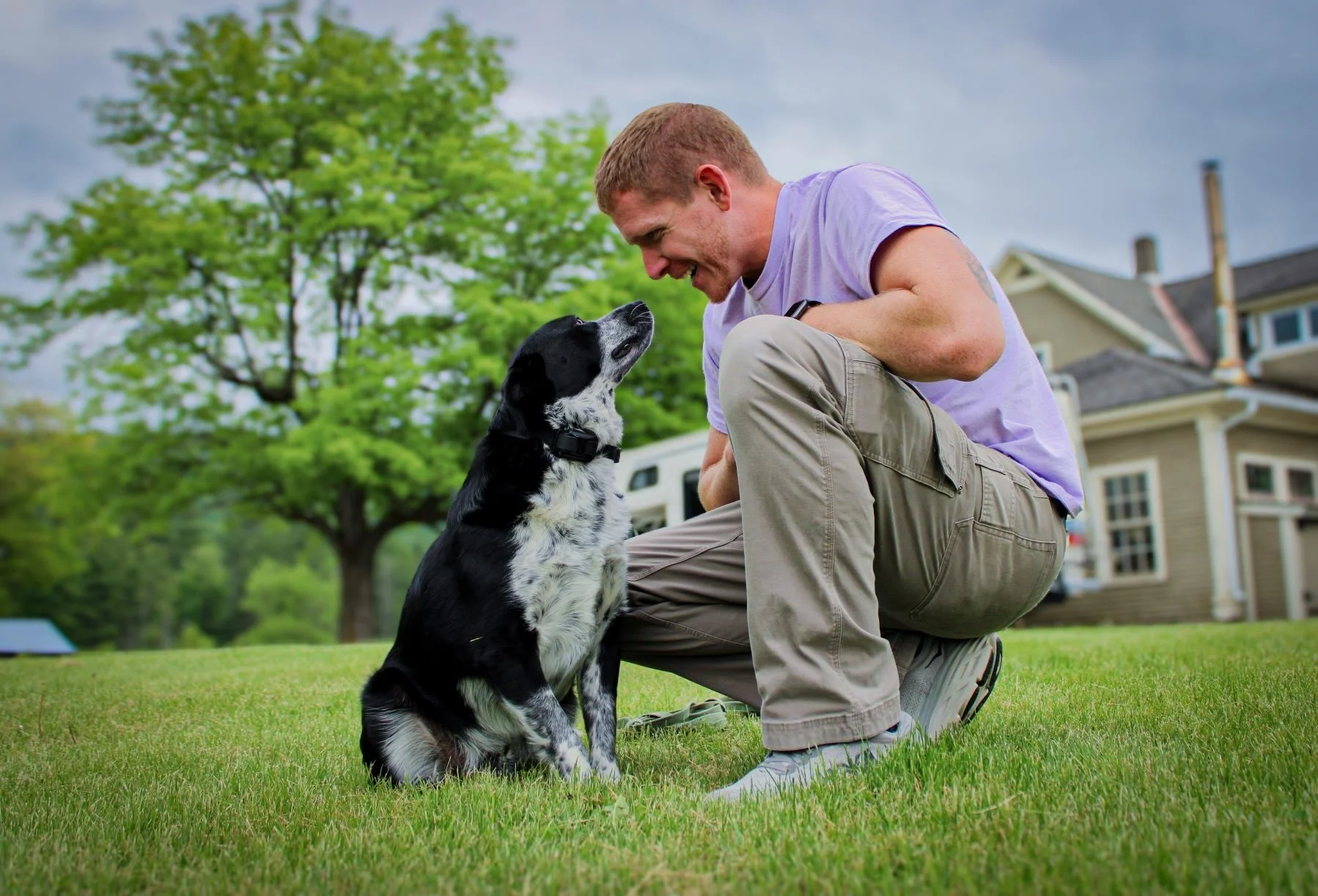 Professionally, Kyle has devoted over a decade to providing care and compassion at RRMC to individuals struggling with emotional dysregulation and altered beliefs of the world. This work made Kyle skilled at thinking on his feet, problem solving, diffusing tension, side-stepping crisis situations, setting clear boundaries, meeting individuals where they are, responding to aggressive and combative behaviors with the level of emotional control and physical technique needed to maintain safety for all parties involved. Kyle enjoyed the day-to-day unpredictability of the work and the critical thinking required to build trust, consistency, and a working relationship. Wanting to seek a career that would better allow for family time, Kyle set out to see whether a life spent training dogs would offer him more balance and fulfillment out of life.
